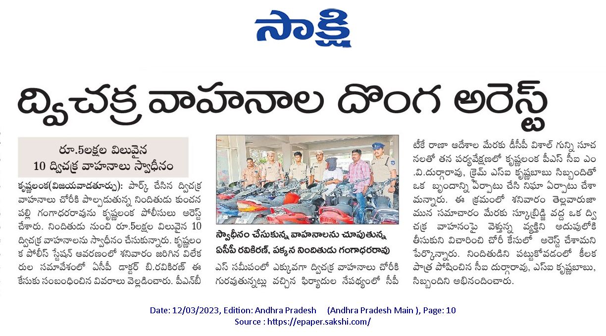 ద్విచక్ర వాహనాల దొంగ అరెస్ట్