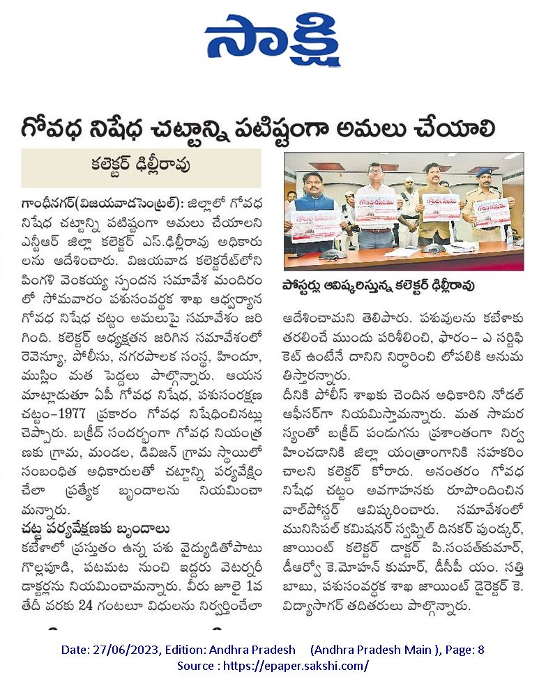 గోవధ నిషేధ చట్టాన్ని పటిష్టంగా అమలు చేయాలి
