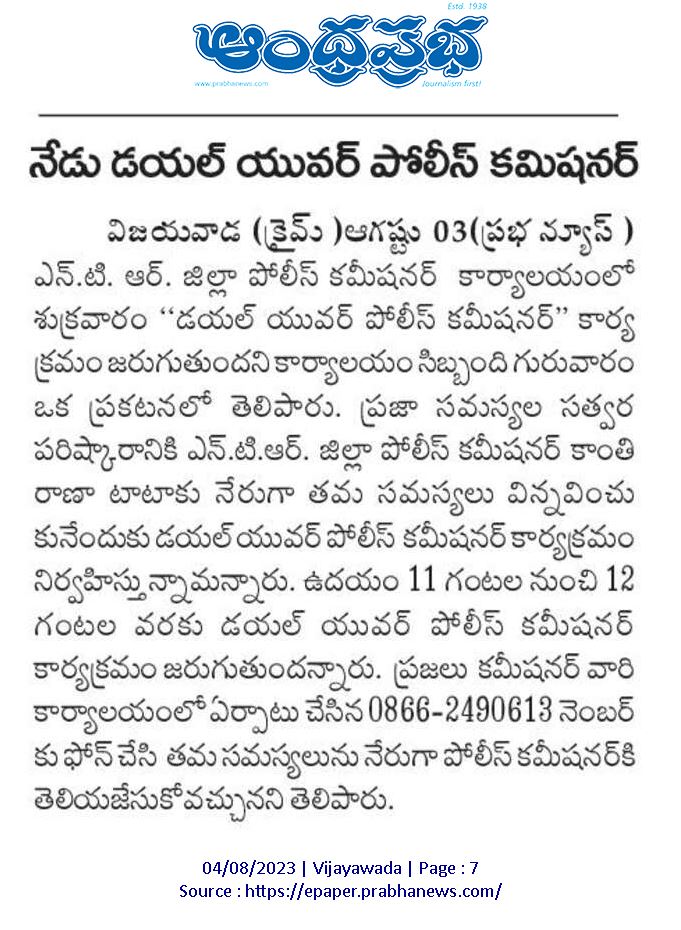 నేడు ‘డయల్ యువర్ పోలీస్ కమిషనర్’ కార్యక్రమం