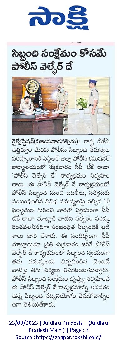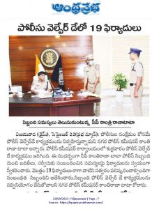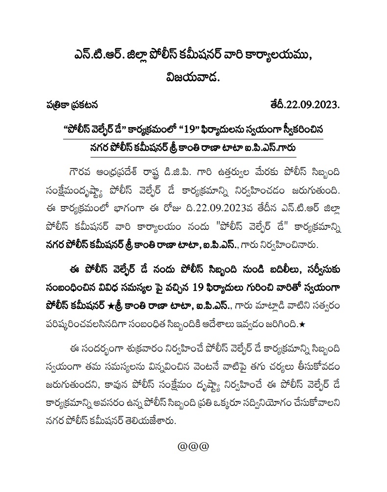 “పోలీస్ వెల్ఫేర్ డే”లో “19” ఫిర్యాదులను స్వీకరించిన సీపీ శ్రీ కాంతి రాణా టాటా ఐ.పి.ఎస్.గారు